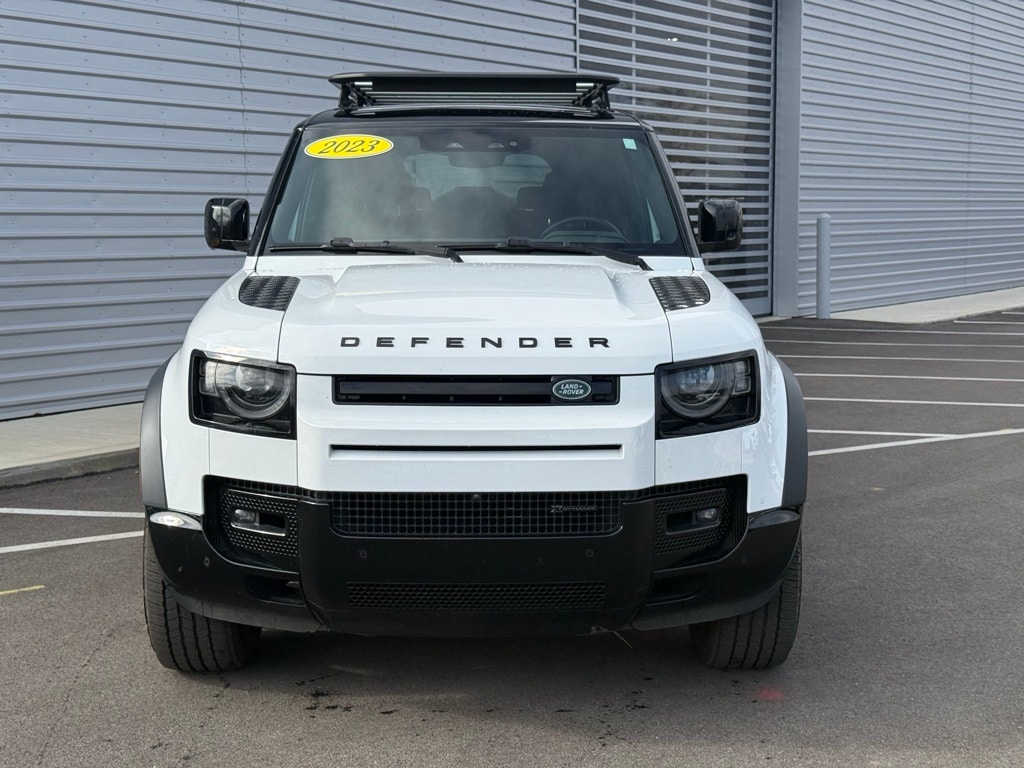 Certified. Fuji White 2023 Land Rover Defender 130 X-Dynamic SE 4WD 8-Speed Automatic 3.0L I6 3RD ROW SEATING, 3rd Row Seats, 4WD, Automatic Headlights, Backup Camera, BLIND SPOT MONITOR, BLUETOOTH/ HANDSFREE, COOLED SEATS, HEATED SEATS, IPOD ADAPTER, Multi-Zone Climate Control, NAVIGATION/GPS, NON SMOKER, PANORAMIC MOONROOF, PARKING SENSORS, REAR VIEW CAMERA/BACKUP CAMERA, RECENT FULL SERVICE, REMOTE START, SATELLITE RADIO/ SIRIUS XM, Steering Wheel Controls, SUNROOF/MOONROOF, TOW PACKAGE, Trailer Hitch, Collision Warning System, Auto Emergency Braking, Rear Cross Traffic Alert, 360 Degree Camera, Voice Recognition, Smartphone App Integration, Adaptive Headlights, Wi-Fi Hotspot, Push Button Start, Touch Screen Controls, Bi Xenon Headlamp Package, Climate Package, Driver Confidence Package, Luxury Package, Trailer Package, Defender 130 X-Dynamic SE, 4D Sport Utility, 3.0L I6, 8-Speed Automatic, 4WD, Navigation system: Connected Navigation PIVI Pro, Towing Pack 2.