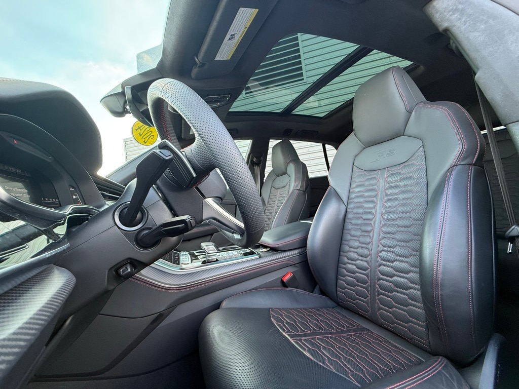 Nardo Gray 2024 Audi RS Q8 4.0T quattro quattro 8-Speed Automatic with Tiptronic 4.0L V8 Turbocharged DOHC 32V LEV3-ULEV125 590hp Automatic Headlights, AWD, Backup Camera, BLIND SPOT MONITOR, BLUETOOTH/ HANDSFREE, COOLED SEATS, HEATED SEATS, IPOD ADAPTER, Keyless Entry, Leather Seats, Multi-Zone Climate Control, NAVIGATION/GPS, NEW TIRES, NON SMOKER, PANORAMIC MOONROOF, PARKING SENSORS, REAR VIEW CAMERA/BACKUP CAMERA, RECENT FULL SERVICE, REMOTE START, SATELLITE RADIO/ SIRIUS XM, Steering Wheel Controls, SUNROOF/MOONROOF, TOW PACKAGE, Trailer Hitch, Auto Emergency Braking, Rear Cross Traffic Alert, 360 Degree Camera, Voice Recognition, Smartphone App Integration, Wi-Fi Hotspot, Push Button Start, Touch Screen Controls, Bi Xenon Headlamp Package, Climate Package, Driver Confidence Package, Luxury Package, Trailer Package, RS Q8 4.0T quattro, 4D Sport Utility, 4.0L V8 Turbocharged DOHC 32V LEV3-ULEV125 590hp, 8-Speed Automatic with Tiptronic, quattro, Nardo Gray, Black w/Express Red Stitching w/Perforated Valcona Leather Seating Surfaces, Black Exterior Trim, Black Mirror Housings, Black Optic Package, Black Roof Rails, Carbon Mask & Front Bumper Inlays, Carbon Mirror Housings, Carbon Package, Carbon Rear Bumper Inlay, Carbon Rear Lighting Strip, Navigation system: Audi MMI Navigation plus with Touch Response, Sport Exhaust System, Wheels: 23" Audi Sport 5 Y-Spoke Rotor Design.