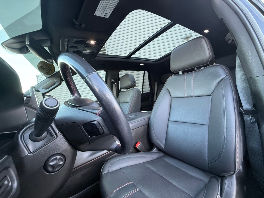 Black 2022 Chevrolet Tahoe RST 4WD 10-Speed Automatic with Overdrive EcoTec3 5.3L V8 3RD ROW SEATING, 3rd Row Seats, 4WD, Automatic Headlights, Backup Camera, BLIND SPOT MONITOR, BLUETOOTH/ HANDSFREE, HEATED SEATS, Keyless Entry, Leather Seats, Multi-Zone Climate Control, NAVIGATION/GPS, NON SMOKER, PANORAMIC MOONROOF, PARKING SENSORS, REAR VIEW CAMERA/BACKUP CAMERA, RECENT FULL SERVICE, REMOTE START, SATELLITE RADIO/ SIRIUS XM, Steering Wheel Controls, SUNROOF/MOONROOF, TOW PACKAGE, Collision Warning System, Auto Emergency Braking, Rear Cross Traffic Alert, Voice Recognition, Smartphone App Integration, Push Button Start, Touch Screen Controls, Audio Package, Bi Xenon Headlamp Package, Climate Package, Driver Confidence Package, Luxury Package, Trailer Package, Tahoe RST, 4D Sport Utility, EcoTec3 5.3L V8, 10-Speed Automatic with Overdrive, 4WD, Black, Jet Black/Victory Red Leather, 1st & 2nd Row Color-Keyed Carpeted Floor Mats, 2nd Row Pwr Release 60/40 Split-Folding Bench Seat, 3rd Row 60/40 Power-Folding Split-Bench Seat, Auto-Dimming Inside Rear-View Mirror, Automatic Stop/Start, Bose 9-Speaker Stereo Audio System Feature, Bright Front & Rear Door Sill Plates, Color-Keyed Carpeting Floor Covering, Driver & Front Outboard Passenger Airbags, Driver Alert Package, Enhanced Driver Information Center, Floor Console w/Storage Area, Hands-Free Rear Power Programmable Liftgate, HD Surround Vision, Heated 2nd Row Outboard Seats, Heated Steering Wheel, Infotainment Display, Lane Change Alert w/Side Blind Zone Alert, Leather-Wrapped Steering Wheel, LED Daytime Running Lamps, Luxury Package, Memory Settings, Memory Settings for Driver, Navigation System, Outside Heated Power-Adjustable Mirrors, Power Tilt & Telescopic Steering Column, Preferred Equipment Group 1SP, Rear Cross Traffic Alert, Rear Pedestrian Alert, Remote Start, SiriusXM Radio w/360L, Start/Stop System Disable Button, Universal Home Remote, Wireless Charging.