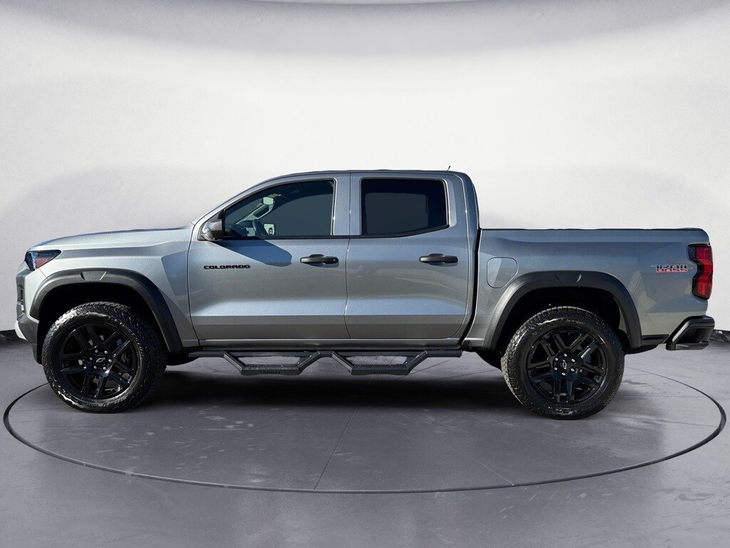 Sterling Gray Metallic 2025 Chevrolet Colorado Trail Boss 4WD 8-Speed Automatic 2.7L I4 Turbocharged DOHC 16V LEV3-ULEV50 310hp 4WD, Automatic Headlights, Backup Camera, BLIND SPOT MONITOR, BLUETOOTH/ HANDSFREE, HEATED SEATS, IPOD ADAPTER, Multi-Zone Climate Control, NAVIGATION/GPS, NON SMOKER, PARKING SENSORS, REAR VIEW CAMERA/BACKUP CAMERA, RECENT FULL SERVICE, REMOTE START, SATELLITE RADIO/ SIRIUS XM, Steering Wheel Controls, TOW PACKAGE, Trailer Hitch, Collision Warning System, Auto Emergency Braking, Rear Cross Traffic Alert, 360 Degree Camera, Voice Recognition, Smartphone App Integration, Push Button Start, Touch Screen Controls, Bi Xenon Headlamp Package, Climate Package, Driver Confidence Package, Luxury Package, Trailer Package, Colorado Trail Boss, 4D Crew Cab, 2.7L I4 Turbocharged DOHC 16V LEV3-ULEV50 310hp, 8-Speed Automatic, 4WD, Sterling Gray Metallic, Jet Black w/Evotex Seat Trim, 4-Spoke Wrapped Steering Wheel, 8-Way Power Driver Seat Adjuster, Adaptive Cruise Control, Automatic Emergency Braking, Chevy Safety Assist, Evotex Seat Trim, Following Distance Indicator, Forward Collision Alert, Front Pedestrian & Bicyclist Braking, HD Surround Vision, Heated Driver & Front Passenger Seats, Heated Steering Wheel, IntelliBeam Automatic High Beam On/Off, Lane Keep Assist w/Lane Departure Warning, Navigation System, Power Driver Lumbar Control Seat Adjuster, Preferred Equipment Group 0TR, Rear Pedestrian Alert, Remote Vehicle Starter System, Technology Package, Trail Boss Convenience Package II, Wireless Phone Charging.