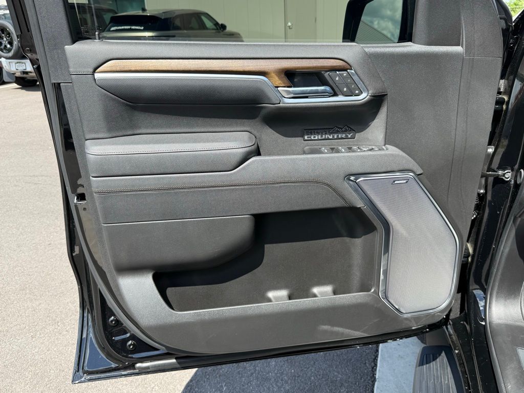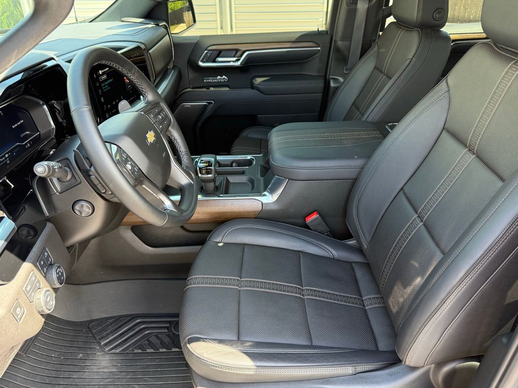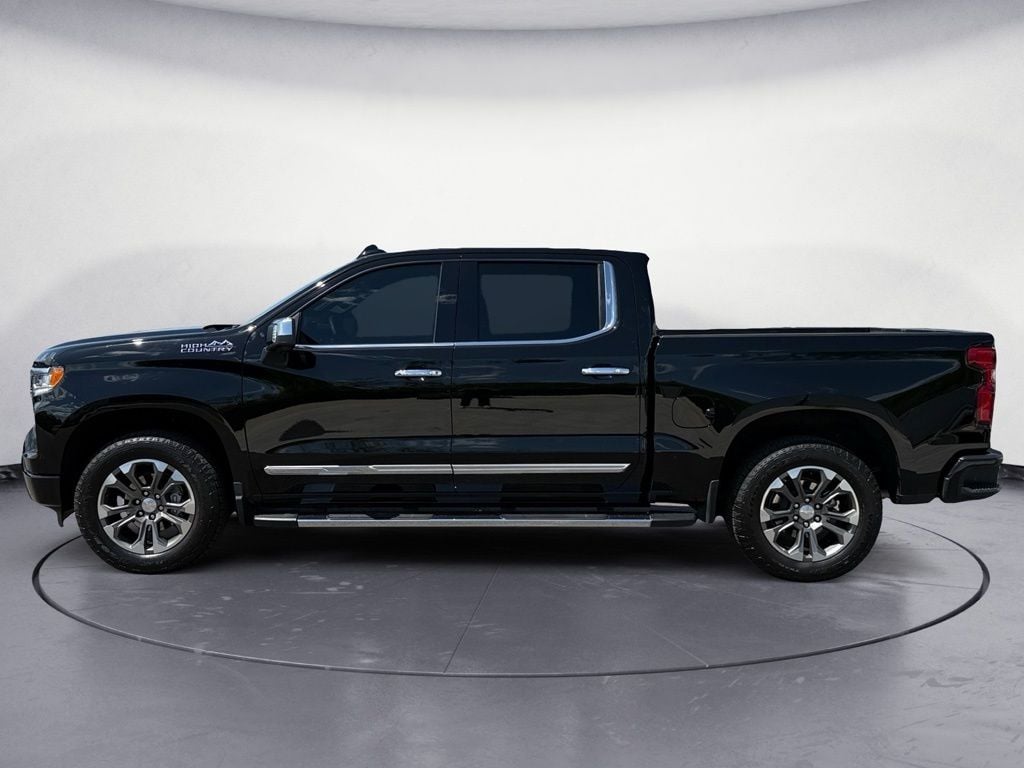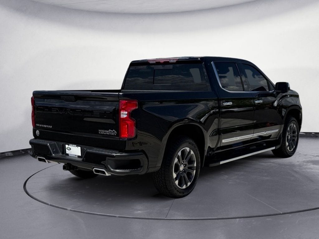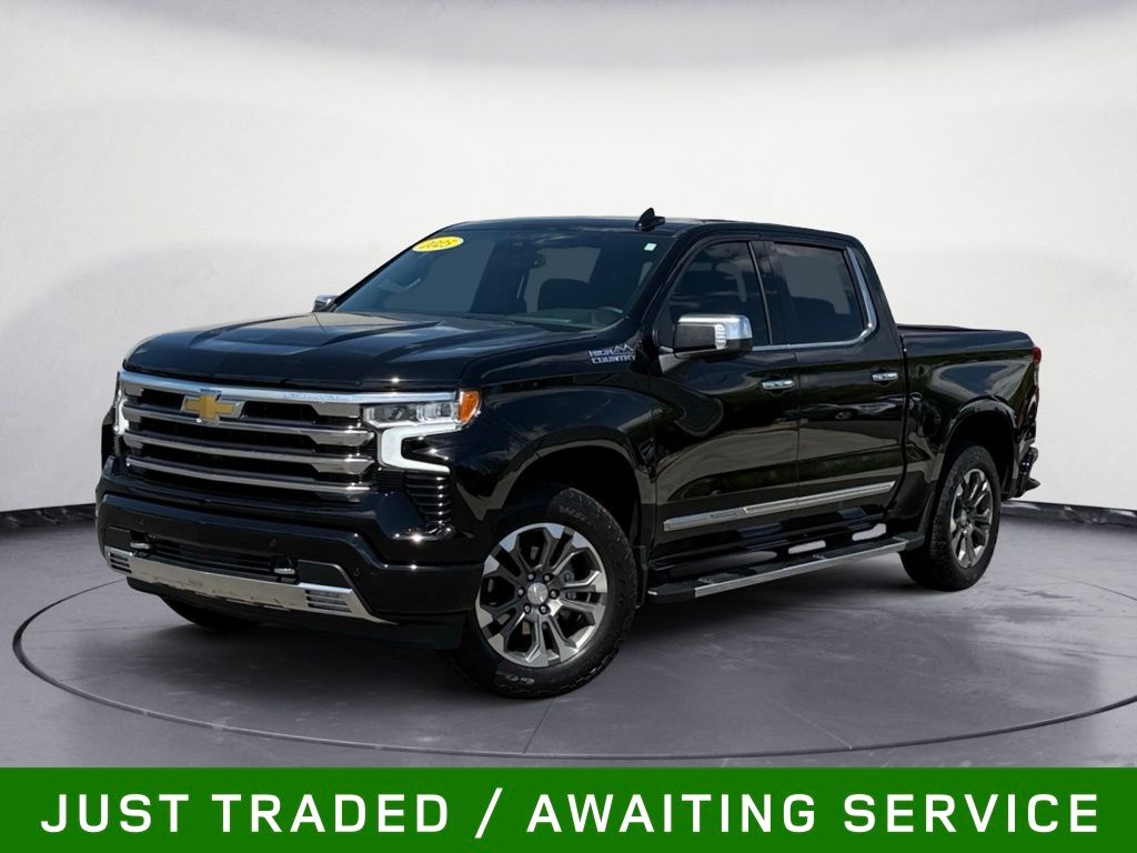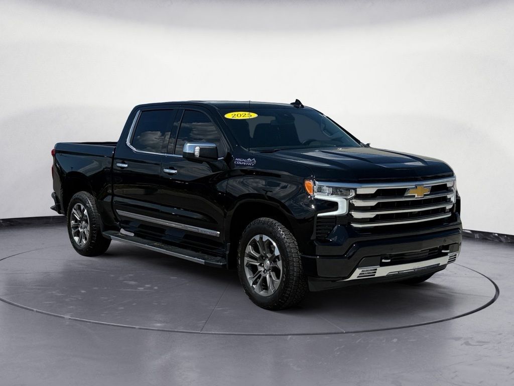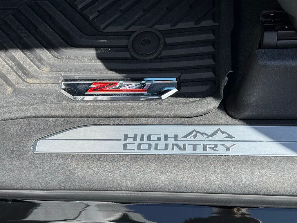 Black 2025 Chevrolet Silverado 1500 High Country 4WD 10-Speed Automatic EcoTec3 5.3L V8 4WD, Automatic Headlights, Backup Camera, BLIND SPOT MONITOR, BLUETOOTH/ HANDSFREE, COOLED SEATS, Cooled Seats, HEATED SEATS, Heated Seats, Keyless Entry, Leather Seats, Multi-Zone Climate Control, Navigation, NAVIGATION/GPS, NON SMOKER, PANORAMIC MOONROOF, PARKING SENSORS, REAR VIEW CAMERA/BACKUP CAMERA, RECENT FULL SERVICE, REMOTE START, SATELLITE RADIO/ SIRIUS XM, Security System, Steering Wheel Controls, TOW PACKAGE, Collision Warning System, Auto Emergency Braking, Rear Cross Traffic Alert, 360 Degree Camera, Voice Recognition, Smartphone App Integration, Push Button Start, Touch Screen Controls, Audio Package, Bi Xenon Headlamp Package, Bose High End Sound Package, Climate Package, Driver Confidence Package, Luxury Package, Trailer Package, 10-Speed Automatic, 4WD, Jet Black w/Perforated Leather Seat Trim, 10-Way Power Driver Seat w/Lumbar, 10-Way Power Passenger Seat Adjuster w/Lumbar, 12.3" Multicolor Reconfigurable Digital Display, 120-Volt Bed Mounted Power Outlet, 120-Volt Interior Power Outlet, 2 USB Data Ports, 2nd Row Heated Outboard Seats, Adaptive Cruise Control, Auto-Dimming Inside Rear-View Mirror, Auto-Locking Rear Differential, Bed View Camera, Bluetooth® For Phone, Body-Color Painted Mirror Caps, Chevytec Spray-On Black Bedliner, Chrome Assist Steps, Chrome Recovery Hooks, Color-Keyed Carpeting Floor Covering, Deep-Tinted Glass, Driver Memory, Dual Exhaust w/Polished Outlets, Dual Rear USB Ports (Charge Only), Electric Rear-Window Defogger, Floor Mounted Center Console, Front Carpeted Floor Mats, Front LED Fog Lamps, Front Rain-Sensing Wipers, HD Surround Vision, Heated Driver & Front Outboard Passenger Seats, Heated Steering Wheel, High Capacity Suspension Package, Hitch Guidance, Hitch Guidance w/Hitch View, In-Vehicle Trailering System App, Integrated Trailer Brake Controller, Keyless Open & Start, LED Cargo Area Lighting, OnStar Services Capable, Outside Heated Power-Adjustable Mirrors, Perimeter Lighting, Power Front Passenger Windows w/Express Up/Down, Power Front Windows w/Driver Express Up/Down, Power Rear Windows w/Express Down, Power Sliding Rear Window w/Rear Defogger, Power Tailgate, Power Tilt & Telescoping Steering Column, Preferred Equipment Group 3LZ, Rear Carpeted Floor Mats, Rear Cross Traffic Braking, Rear Pedestrian Alert, Rear Wheelhouse Liners, Remote Vehicle Starter System, Safety Alert Seat, SiriusXM w/360L Trial Subscription, Standard Tailgate, Steering Wheel Audio Controls, Teen Driver, Theft Deterrent System (Unauthorized Entry), Tire Pressure Monitoring System, Trailer Camera Provisions, Trailer Side Blind Zone Alert, Trailering Package, Ultrasonic Front & Rear Park Assist, Universal Home Remote, Up-Level Rear Seat w/Storage Package, Ventilated Driver & Front Passenger Seats, Wi-Fi Hot Spot Capable, Wrapped Steering Wheel.
