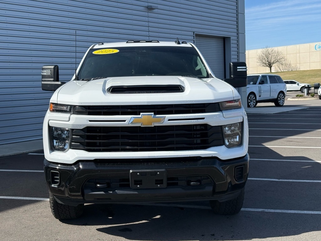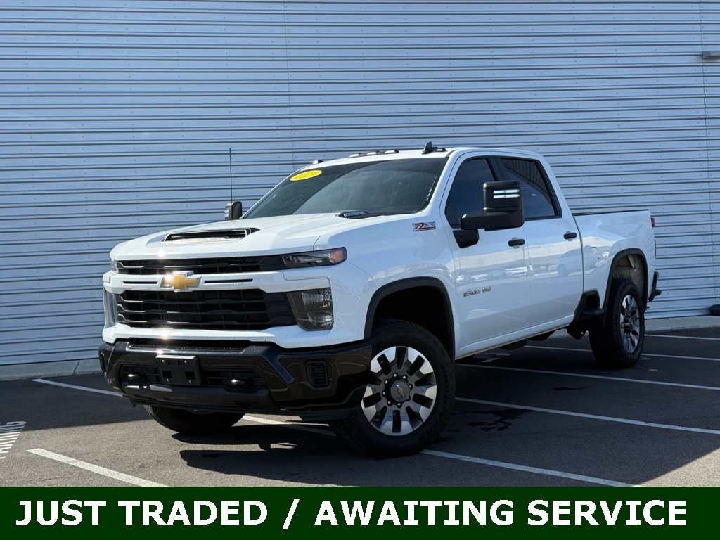 Summit White 2025 Chevrolet Silverado 2500HD Custom 4WD 10-Speed Automatic 6.6L V8 4WD, Alloy Wheels, Automatic Headlights, Backup Camera, BLUETOOTH/ HANDSFREE, IPOD ADAPTER, Keyless Entry, NON SMOKER, PARKING SENSORS, REAR VIEW CAMERA/BACKUP CAMERA, RECENT FULL SERVICE, REMOTE START, SATELLITE RADIO/ SIRIUS XM, Steering Wheel Controls, TOW PACKAGE, Trailer Hitch, Collision Warning System, Rear Cross Traffic Alert, Voice Recognition, Smartphone App Integration, Push Button Start, Touch Screen Controls, Driver Confidence Package, Heavy Duty Trailer Package, Trailer Package, Z71 Package, Silverado 2500HD Custom, 4D Crew Cab, 6.6L V8, 10-Speed Automatic, 4WD, Summit White, Black Cloth, Custom Convenience Package, Preferred Equipment Group 1CX, Suspension Package, Z71 Off-Road Package.