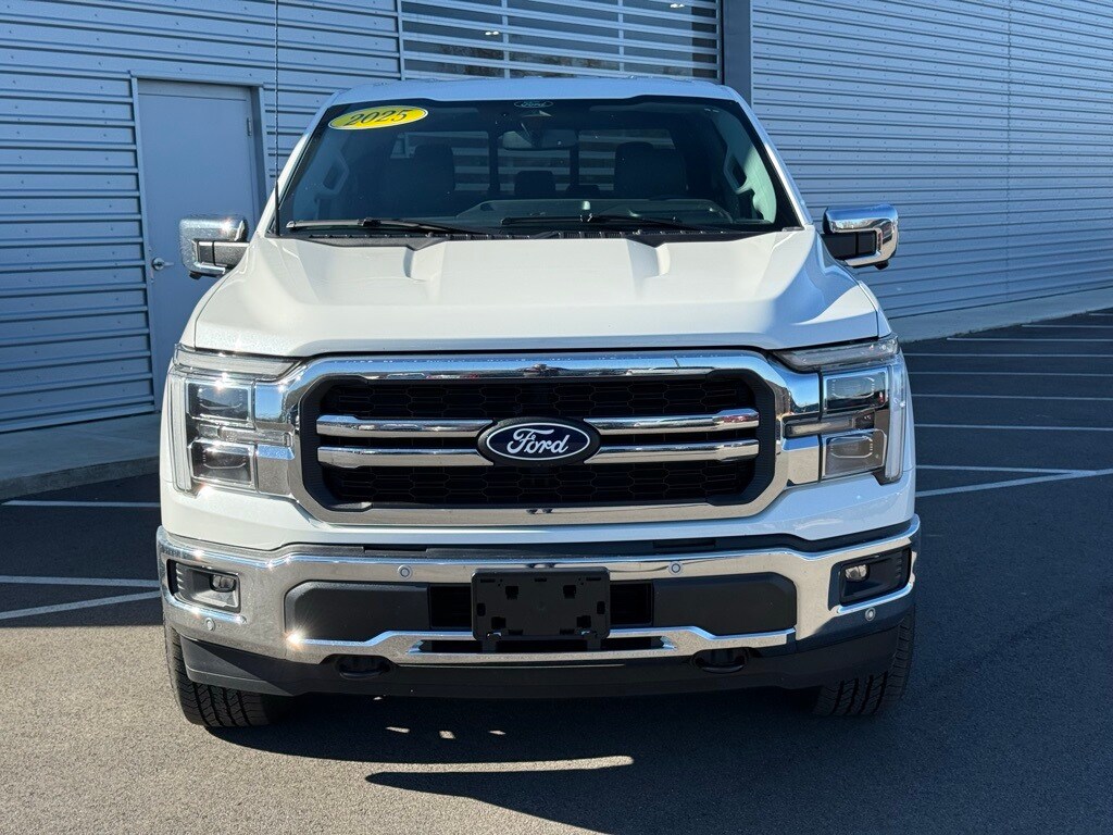 Star White Metallic Tri-Coat 2025 Ford F-150 Lariat 4WD 10-Speed Automatic 3.5L V6 EcoBoost 4WD, Automatic Headlights, Backup Camera, BLIND SPOT MONITOR, BLUETOOTH/ HANDSFREE, COOLED SEATS, HEATED SEATS, IPOD ADAPTER, Leather Seats, Multi-Zone Climate Control, Navigation, NAVIGATION/GPS, NON SMOKER, PARKING SENSORS, REAR VIEW CAMERA/BACKUP CAMERA, RECENT FULL SERVICE, REMOTE START, SATELLITE RADIO/ SIRIUS XM, Steering Wheel Controls, SUNROOF/MOONROOF, TOW PACKAGE, Trailer Hitch, Collision Warning System, Auto Emergency Braking, Rear Cross Traffic Alert, 360 Degree Camera, Voice Recognition, Smartphone App Integration, Push Button Start, Touch Screen Controls, Climate Package, Driver Confidence Package, Luxury Package, Trailer Package, F-150 Lariat, 4D SuperCrew, 3.5L V6 EcoBoost, 10-Speed Automatic, 4WD, Star White Metallic Tri-Coat, Black w/ActiveX Trimmed Bucket Seats, 2nd Row Heated Seats, 4 Pickup Box Tie-Down Plates, 4x4 FX4 Off-Road Bodyside Decal, Ambient Lighting - Ice Blue Color Only, Bed Utility Package, Console Worksurface, Electronic Locking w/3.31 Axle Ratio, Equipment Group 502A High, FX4 Off-Road Package, Heads-Up Display, Hill Descent Control, Illuminated Driver & Passenger Visors, Integrated Trailer Brake Controller, LED Box Lighting, Mobile Office Package, Monotube Rear Shocks, Navigation system: Connected Navigation, Off-Road Tuned Front Shock Absorbers, Partitioned Lockable Rear Storage, Power Tailgate, Power-Sliding Rear Window, Pro Access Tailgate, Radio: B&O Unleashed Sound System by Bang & Olufsen, Rock Crawl Mode, Tow/Haul Package, Tray Style Floor Liner w/o Carpet Mats, Wheels: 20" Chrome-Like PVD, Wireless Charging.