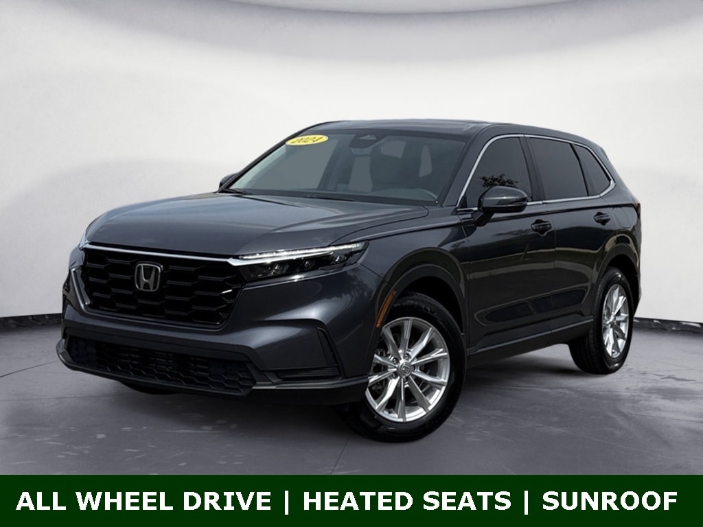 Meteorite Gray Metallic 2024 Honda CR-V EX AWD CVT 1.5L I4 DOHC 16V Automatic Headlights, AWD, HEATED SEATS, Heated Seats, IPOD ADAPTER, NON SMOKER, PARKING SENSORS, REAR VIEW CAMERA/BACKUP CAMERA, RECENT FULL SERVICE, SATELLITE RADIO/ SIRIUS XM, Steering Wheel Controls, Rear Cross Traffic Alert, Voice Recognition, Smartphone App Integration, Push Button Start, Touch Screen Controls, Climate Package, Driver Confidence Package, CR-V EX, 4D Sport Utility, 1.5L I4 DOHC 16V, CVT, AWD, Meteorite Gray Metallic, Black w/Cloth Seat Trim.
