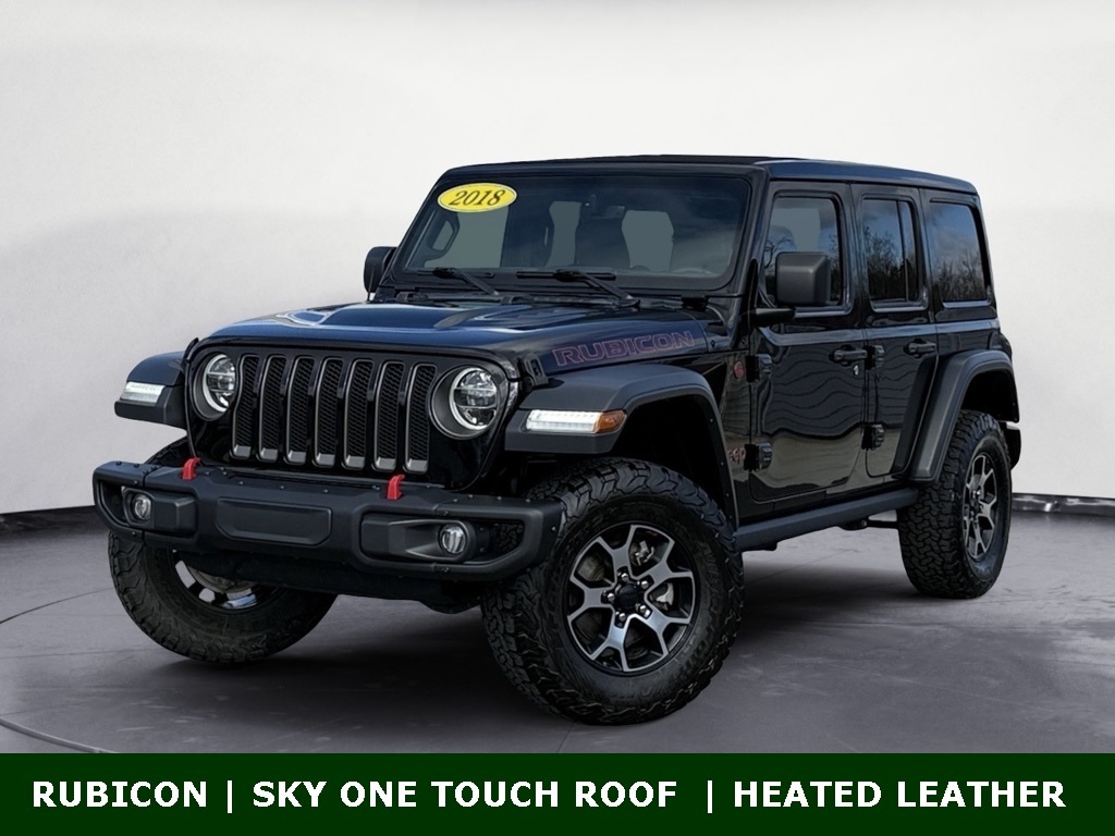 Black Clearcoat 2018 Jeep Wrangler Unlimited Rubicon 4WD 8-Speed Automatic 3.6L V6 24V VVT 4WD, Automatic Headlights, Backup Camera, BLIND SPOT MONITOR, BLUETOOTH/ HANDSFREE, HEATED SEATS, IPOD ADAPTER, Keyless Entry, Leather Seats, Multi-Zone Climate Control, NAVIGATION/GPS, NON SMOKER, PANORAMIC MOONROOF, PARKING SENSORS, REAR VIEW CAMERA/BACKUP CAMERA, RECENT FULL SERVICE, REMOTE START, SATELLITE RADIO/ SIRIUS XM, SUNROOF/MOONROOF, TOW PACKAGE, Trailer Hitch, Collision Warning System, Auto Emergency Braking, Rear Cross Traffic Alert, Voice Recognition, Smartphone App Integration, Push Button Start, Touch Screen Controls, Climate Package, Driver Confidence Package, Luxury Package, Trailer Package, Wrangler Unlimited Rubicon, 4D Sport Utility, 3.6L V6 24V VVT, 8-Speed Automatic, 4WD, Black Clearcoat, Black Leather, 1-Year SiriusXM Guardian Trial, 240 Amp Alternator, 5-Year SiriusXM Traffic Service, 5-Year SiriusXM Travel Link Service, 7 & 4 Pin Wiring Harness, 700 Amp Maintenance Free Battery, 8.4" Touchscreen Display, Alpine Premium Audio System, Auto-Dimming Rear-View Mirror, Auxiliary Switches, Class II Receiver Hitch, Cold Weather Group, Daytime Running Lamps LED Accents, Electronic Infotainment System Group, Front LED Fog Lamps, GPS Navigation, HD Radio, Heated Front Seats, Heated Steering Wheel, LED Lighting Group, LED Reflector Headlamps, LED Taillamps, Quick Order Package 24R, Radio: Uconnect 4C Nav w/8.4" Display, Roadside Assistance & 9-1-1 Call, SiriusXM Traffic Plus, SiriusXM Travel Link, Steel Bumper Group, Steel Front Bumper, Steel Rear Bumper, Trailer Tow & HD Electrical Group.