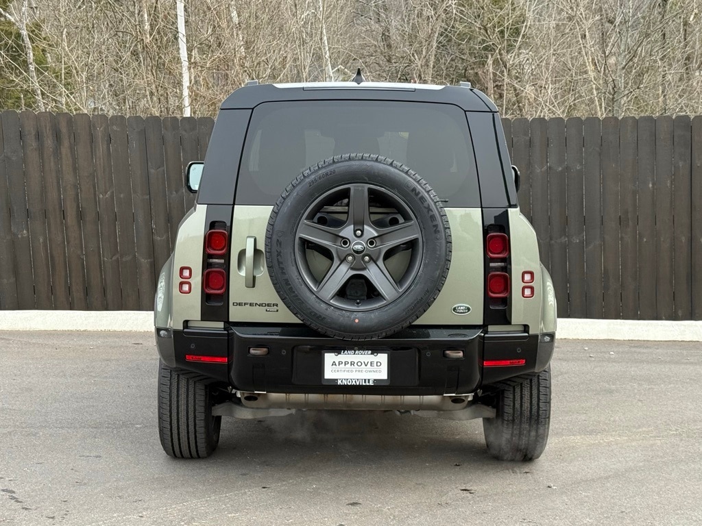 Certified. Pangea Green Metallic 2023 Land Rover Defender 90 X-Dynamic SE 4WD 8-Speed Automatic 3.0L I6 4WD, Automatic Headlights, Backup Camera, BLIND SPOT MONITOR, BLUETOOTH/ HANDSFREE, COOLED SEATS, HEATED SEATS, IPOD ADAPTER, Keyless Entry, Leather Seats, Multi-Zone Climate Control, NAVIGATION/GPS, NEW TIRES, NON SMOKER, PANORAMIC MOONROOF, PARKING SENSORS, REAR VIEW CAMERA/BACKUP CAMERA, RECENT FULL SERVICE, REMOTE START, SATELLITE RADIO/ SIRIUS XM, Steering Wheel Controls, SUNROOF/MOONROOF, Collision Warning System, Auto Emergency Braking, Rear Cross Traffic Alert, 360 Degree Camera, Voice Recognition, Smartphone App Integration, Push Button Start, Touch Screen Controls, Audio Package, Bi Xenon Headlamp Package, Climate Package, Driver Confidence Package, Luxury Package, Defender X-Dynamic SE, 2D Sport Utility, 3.0L I6, 8-Speed Automatic, 4WD, Pangea Green Metallic, Khaki/Ebony w/Resist Seats, Navigation system: Connected Navigation PIVI Pro, Towing Pack.