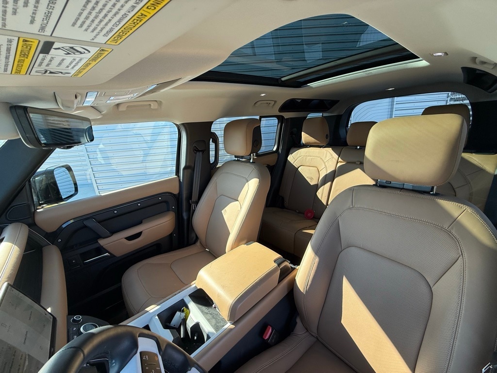 Certified. Carpathian Grey Metallic 2025 Land Rover Defender 110 S AWD 8-Speed Automatic 3.0L I6 4WD, Automatic Headlights, Backup Camera, BLUETOOTH/ HANDSFREE, COOLED SEATS, HEATED SEATS, IPOD ADAPTER, Keyless Entry, Leather Seats, Multi-Zone Climate Control, NAVIGATION/GPS, NON SMOKER, PANORAMIC MOONROOF, PARKING SENSORS, REAR VIEW CAMERA/BACKUP CAMERA, RECENT FULL SERVICE, REMOTE START, SATELLITE RADIO/ SIRIUS XM, SUNROOF/MOONROOF, Collision Warning System, Auto Emergency Braking, Rear Cross Traffic Alert, 360 Degree Camera, Voice Recognition, Smartphone App Integration, Wi-Fi Hotspot, Push Button Start, Touch Screen Controls, Bi Xenon Headlamp Package, Climate Package, Driver Confidence Package, Luxury Package, Defender 110 S, 4D Sport Utility, 3.0L I6, 8-Speed Automatic, AWD, Carpathian Grey Metallic, Caraway/Ebony w/Windsor Leather Seat Trim, Navigation system: Connected Navigation PIVI Pro.
